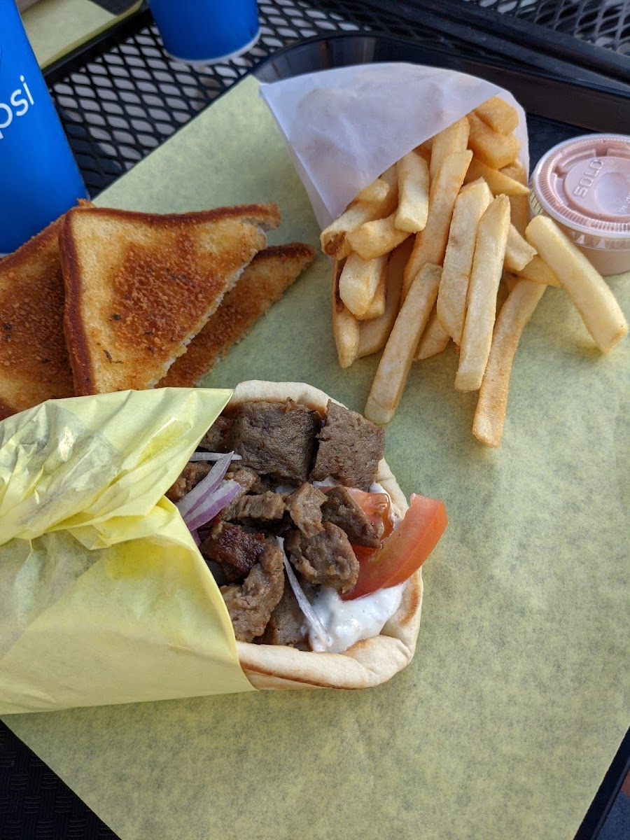 One of the standout dishes at Golden Gyros is the Chicken Souvlaki Platter. This dish features perfectly grilled chicken, paired with fresh veggies and flavorful sides, making it a filling and satisfying choice. If you’re a fan of gyros, the Chicken Gyro is a must-try, with tender grilled chicken wrapped in a soft pita and topped with tangy sauces and fresh ingredients. For those who prefer a traditional gyro, the Classic Gyro Lamb is a popular pick, offering a rich, authentic flavor that transports you straight to Greece. The Classic Gyro Combo, which combines the best of both worlds, is another popular option for those who want to experience a little bit of everything.